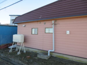 本管埋設なし、汲取り便槽。浸透式マンホール設置済み |